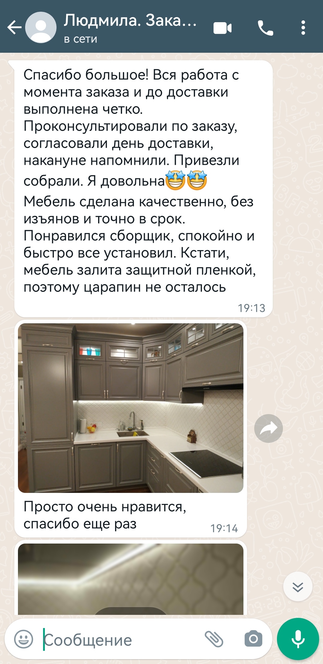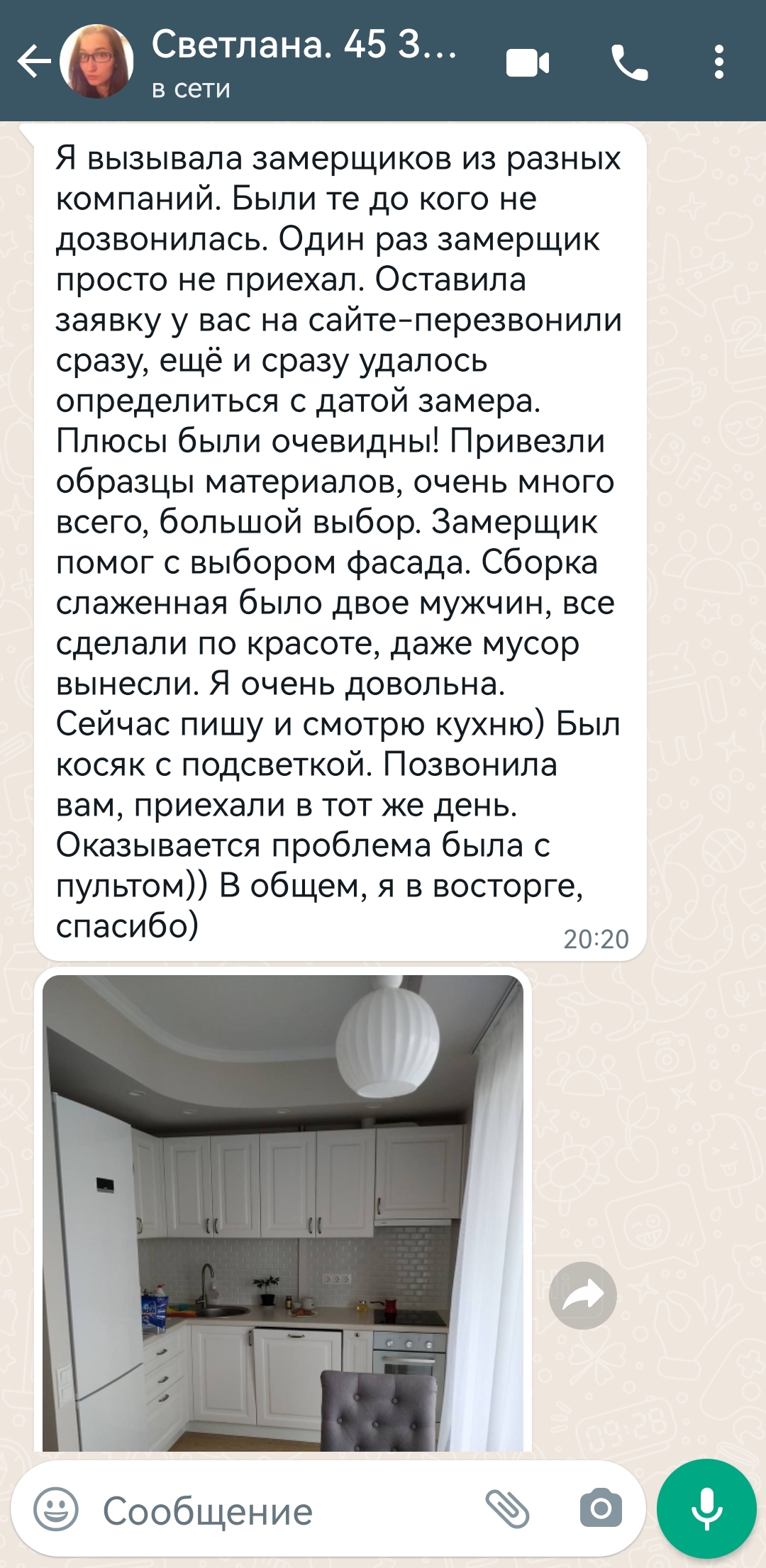 Вызов замерщика стоит от 3500 рублей. Эту сумму мы потом вычитаем при заключении договора на изготовление кухни. Услуги дизайнера и 3д моделирование кухни входит в стоимость кухни.